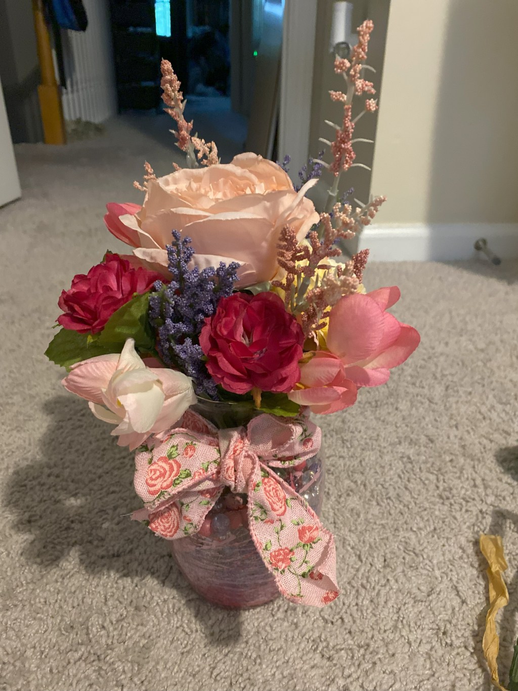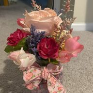 Lovely faux flower and greenery accessories and decor, hand arranged